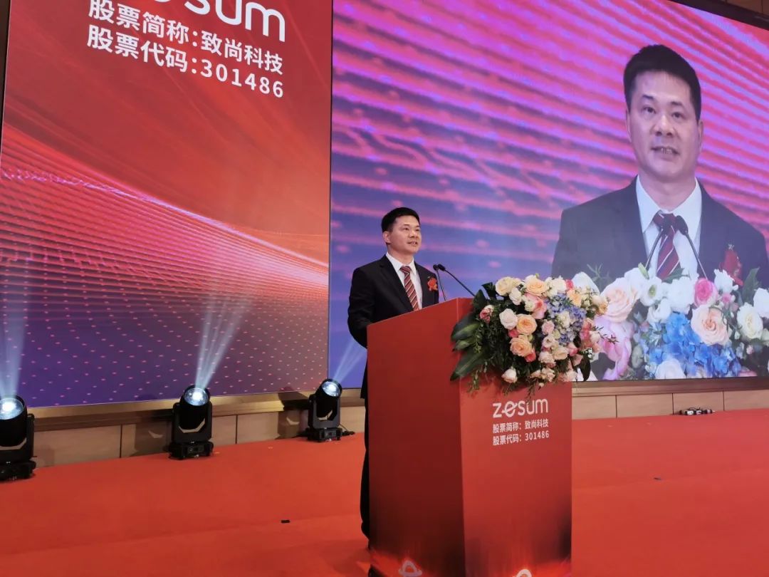 孙雷副校长在庆典仪式上致辞祝贺致尚科技公司在创业板成功上市