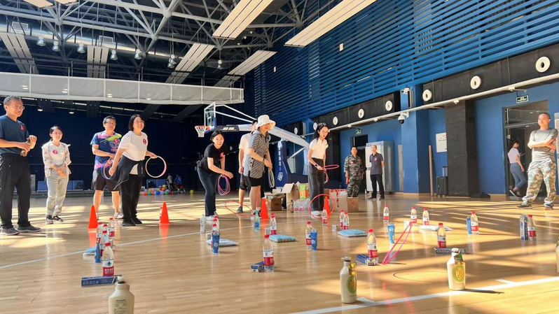 本次比赛通过抽签形式,将老师们分为9组,进行分组比拼。历时三个小时,比赛依次进行了四人五足、夹乒乓球、套圈、陆地冰壶和投篮等活动。老师们在比赛中团结一心,奋力拼搏,努力在比赛中为自己的队伍赢下更多分数。