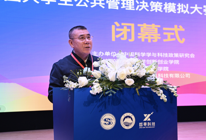 主办单位代表胡志坚在致辞中回顾了中国公共管理学科的建设与发展历程,对参赛学生展示出的敏锐的问题洞见力、精准的问题研判力、强烈的家国情怀与积极的创新精神表示赞扬,勉励青年学生坚守公共之行、同护管理之花,丰富治理之路、实现国家之梦,壮大公管学界的青年力量。