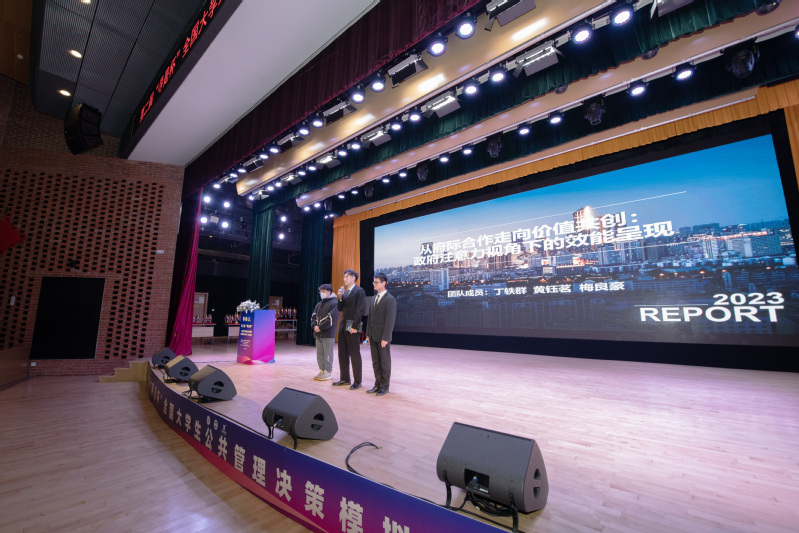 随后,公共管理方案设计、公共管理决策演练沙盘对抗和现场团队答辩在学生活动中心报告厅等会场进行。选手们结合实际情境进行模拟实践,深入探究研讨公共管理前沿问题,在团队协作中进行决策制定与问题解决。