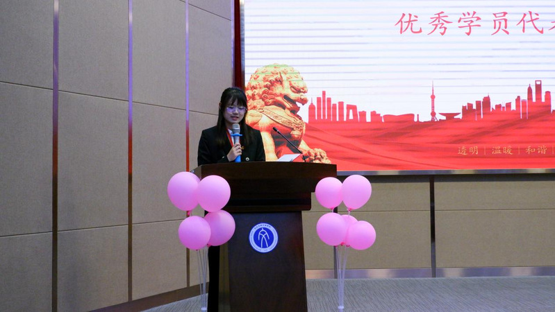 王希萌同学代表文法学院第十七期“青马工程”培训班全体学员以自己的亲身体会肯定了此次培训的积极意义,表达了对学院搭建的成长培育平台的衷心感谢,并号召各位同学找准自身定位,充分发挥岗位作用,以团结、创新、不服输的精神开展工作,在新的历史起点上为学校发展注入新的活力。