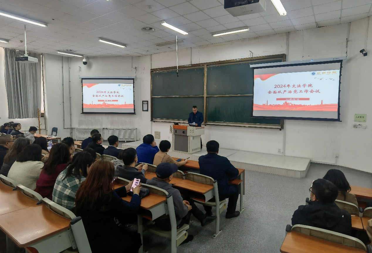2024年3月27日下午,文法学院于文管学馆A129教室召开了2024年全面从严治党工作会议,学院全体教职工党员参加会议。