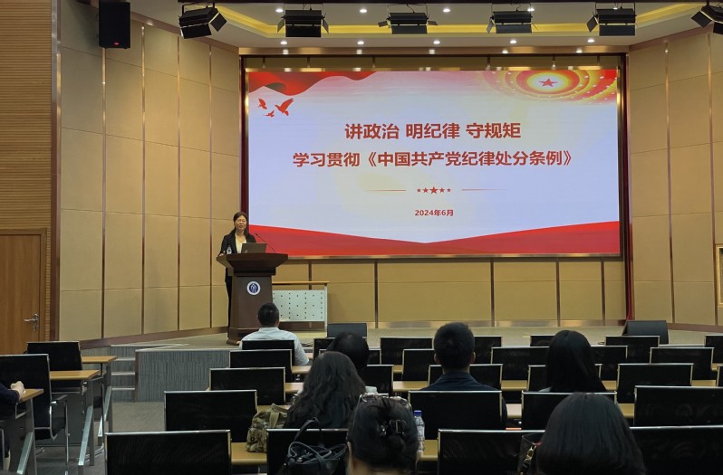 6月3日下午,文法学院党委在浑南校区文管学馆B230会议室开展党纪学习教育专题宣讲。校党纪学习教育宣讲团副团长、校纪委副书记、纪委办公室[监察室]主任、马克思主义学院教授王立慧受邀以“讲政治 明纪律 守规矩——学习贯彻《中国共产党纪律处分条例》”为题进行专题讲座。学院党委书记隋永强主持宣讲活动,学院全体教职工参加学习。