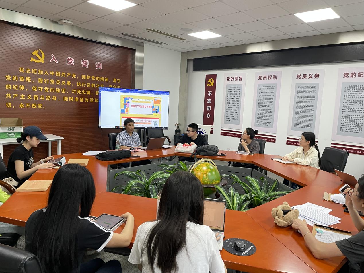 5月21日,文法学院院长杜宝贵在文管学馆A202会议室为本硕第一党支部讲授党纪学习教育专题党课,支部全体在校党员、积极分子参加了专题党课学习。