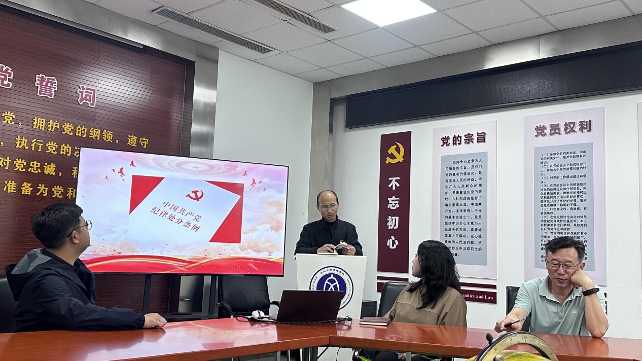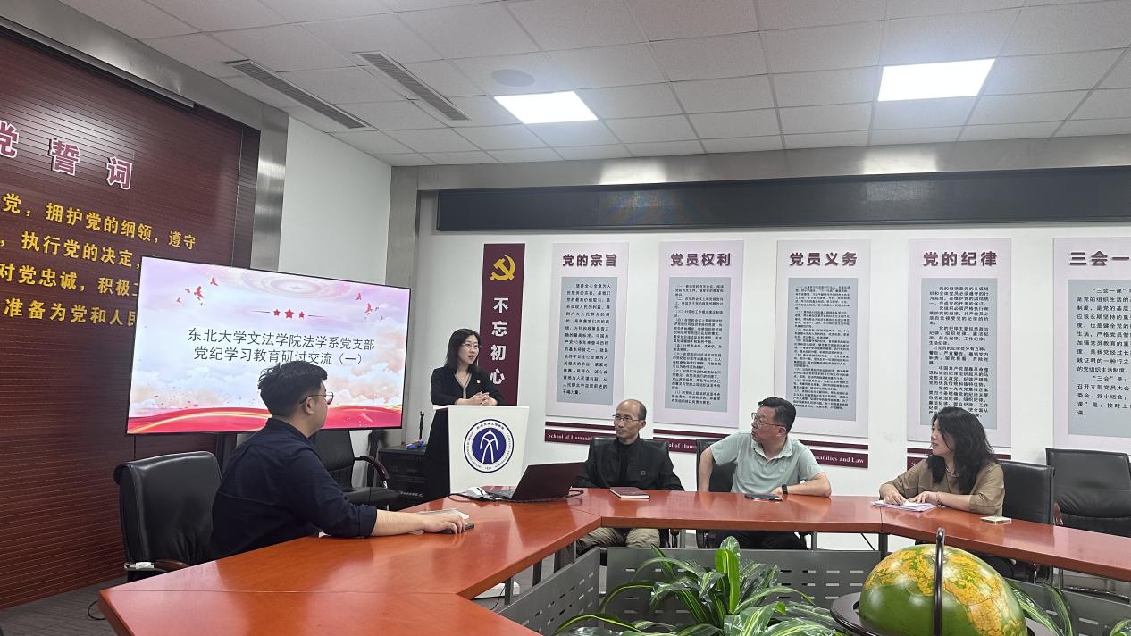 为扎实推进党纪学习教育走深走实,加强支部纪律建设,提高支部党员的规则与纪律意识,5月29日下午,文法学院法学系党支部在浑南校区文管学馆A202会议室召开党纪学习教育会议,支部对接领导、文法学院副院长满小欧同志应邀出席,支部书记杨丰一主持会议,法学系党支部成员与部分学生党支部成员参加学习。