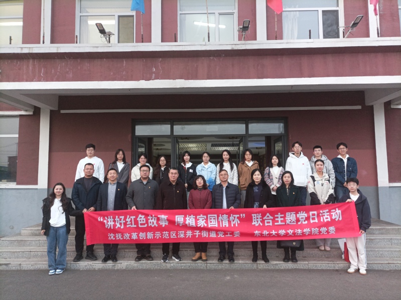 11月8日,东北大学文法学院党委组织本年度第三期发展对象前往沈抚改革创新示范区深井子街道国公寨社区进行学习实践,共同开展“讲好红色故事,厚植家国情怀”联合主题党日活动,文法学院党委书记隋永强,文法学院党委副书记、副院长(兼)严立宁,深井子街道党工委书记富峣,深井子街道党工委副书记白素兰,深井子街道国公寨社区驻村第一书记、东北大学艺术学院学生办公室主任娄洹博,文法学院党委组织员刘颖慧等出席本次活动。