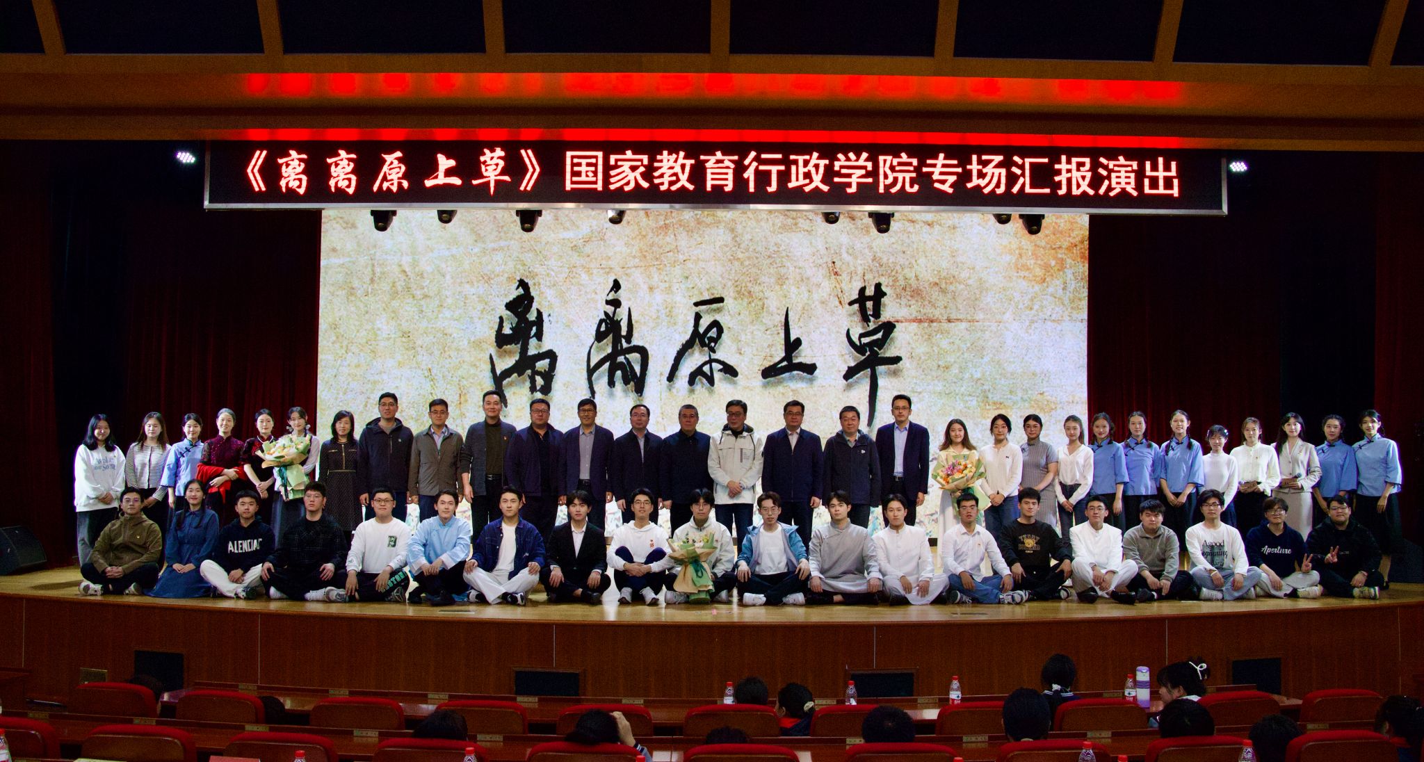 11月12日晚,东北大学原创校史题材话剧《离离原上草》在国家教育行政学院逸夫报告厅公演。国家教育行政学院副院长樊平军,东北大学副校长王兴伟,国家教育行政学院教育部直属机关党校工作办公室(宣传中心)、东北大学研究生院、文法学院、学生工作处等相关负责人出席活动。教育部直属系统学习贯彻全国教育大会精神集中轮训班(第二期)、第五期教育部直属系统中青年干部培训班、部直属机关党校处级党员干部理论进修班、第27期高校中层干部专题研修班,以及北京石油化工学院、北京印刷学院师生和教职工代表共同观看了演出。