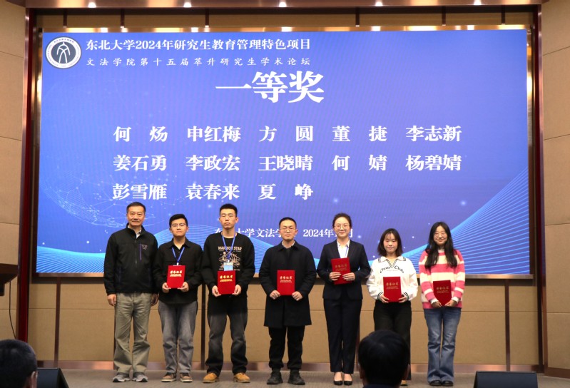 严立宁宣读《关于表彰东北大学文法学院第十五届萃升研究生学术论坛优秀论文的决定》,向获奖同学表示祝贺,并对所有研究生同学提出期望。