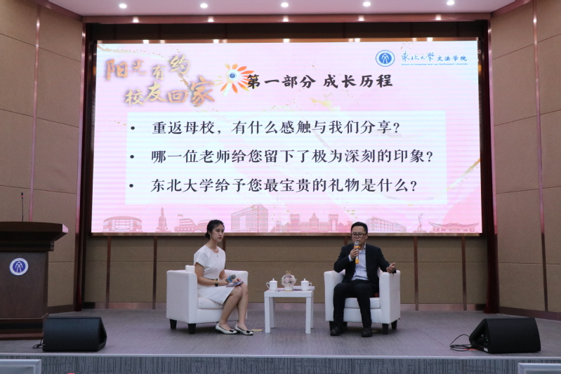 3月26日,东北大学文法学院第二期“阳光有约”校友返校访谈活动在文管学馆B230室举行。文法学院1995级法学专业校友、辽宁同方律师事务所高级合伙人张鑫辉及文法学院2014级法学专业校友、辽宁同方律师事务所律师段佳琪重返母校,与师生代表共话成长历程,分享职业感悟。文法学院党委书记隋永强,文法学院院长杜宝贵,党委副书记、副院长(兼)严立宁等出席活动,文法学院各年级法学专业学生参加活动。