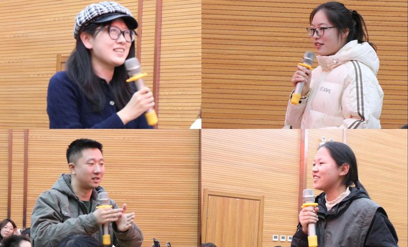 在校园地标盲盒回忆环节,张鑫辉抽取了学生活动中心、食堂等地标卡片,分享了学生时代的趣事。在交流互动环节,张鑫辉和段佳琪一一回答了现场同学提出的问题,希望同学们在大学期间注重自我觉醒,找到热爱所在,未来在职业道路上持续深耕,在强国建设、民族复兴的新征程上书写青春答卷。