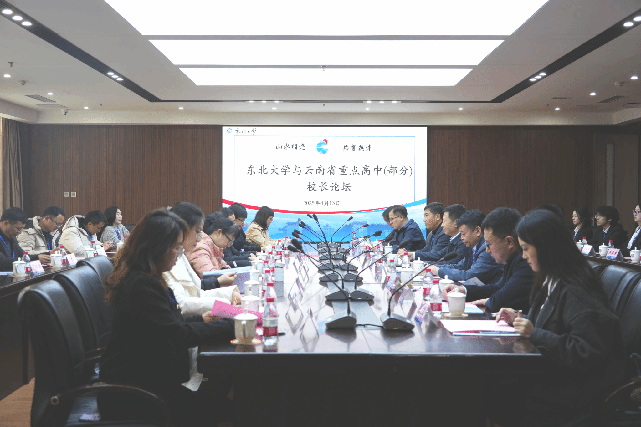 4月13日,“山水相连·共育英才”云南省重点高中(部分)校长论坛在汉卿会堂308室举行。东北大学党委常委、副校长王辉,云南招生组组长、文法学院院长杜宝贵,浑南校区管理委员会主任杨定鹏,学生工作处、文法学院相关负责人和来自云南省重点高中(部分)的领导、老师以及在校云南籍学生代表出席论坛。