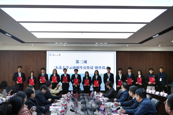 会上,杜宝贵为13名云南籍在校生颁发了东北大学云南招生宣传员聘任证书。