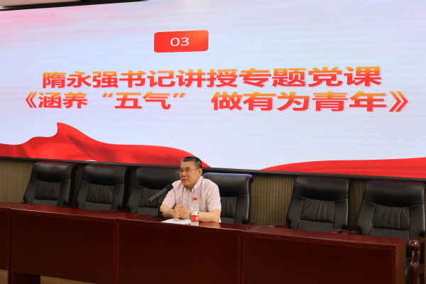 6月12日,文法学院在浑南校区学生中心311室为2025届毕业生党员讲授在校期间最后一次党课,学院党委书记隋永强受邀以“涵养‘五气’做有为青年”为题讲授专题党课。文法学院党委副书记、副院长(兼)严立宁,学生工作办公室主任甘霖、团委书记赵泽超、党委组织员刘颖慧、辅导员张浩然和2025届全体毕业生党员参加活动。