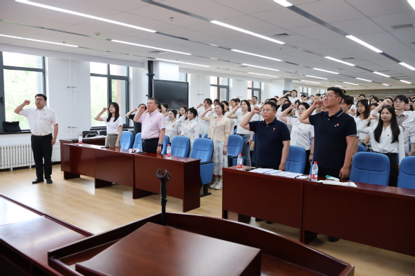 严立宁带领全体毕业生党员面向党旗庄严宣誓,重温入党誓词,强化党性教育,勉励大家牢记初心使命,争做新时代合格党员。与会人员共同观看了廉政教育视频《家·锁》。