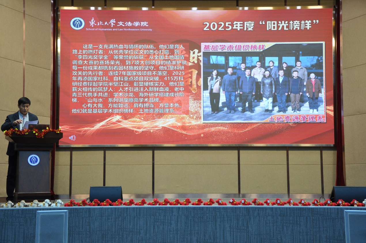 辉映来时路、同心向未来。1月14日,文法学院2025年度阳光榜样、“十四五”总结表彰大会暨2026年迎新年联欢会在浑南校区文管学馆B230举行。学校党委副书记、纪委书记吴豪伟以及部分职能部门领导受邀出席活动。