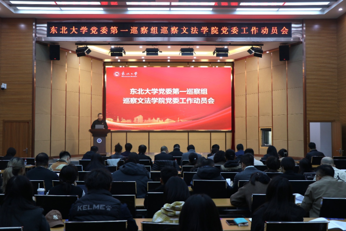 2026年3月26日上午,东北大学党委第一巡察组巡察文法学院工作动员会,在浑南校区文管学馆B230会议室召开,校党委副书记、纪委书记、党委巡察工作领导小组副组长吴豪伟,第一巡察组全体成员和巡察办相关人员出席会议,文法学院全体教职工、学生代表等96人参加动员会。会议由文法学院党委副书记、纪委书记孙宏伟主持。