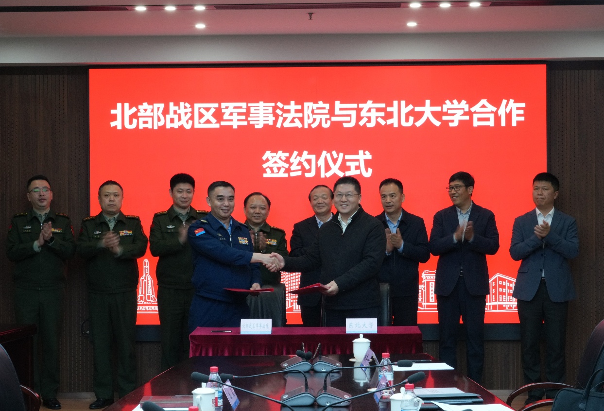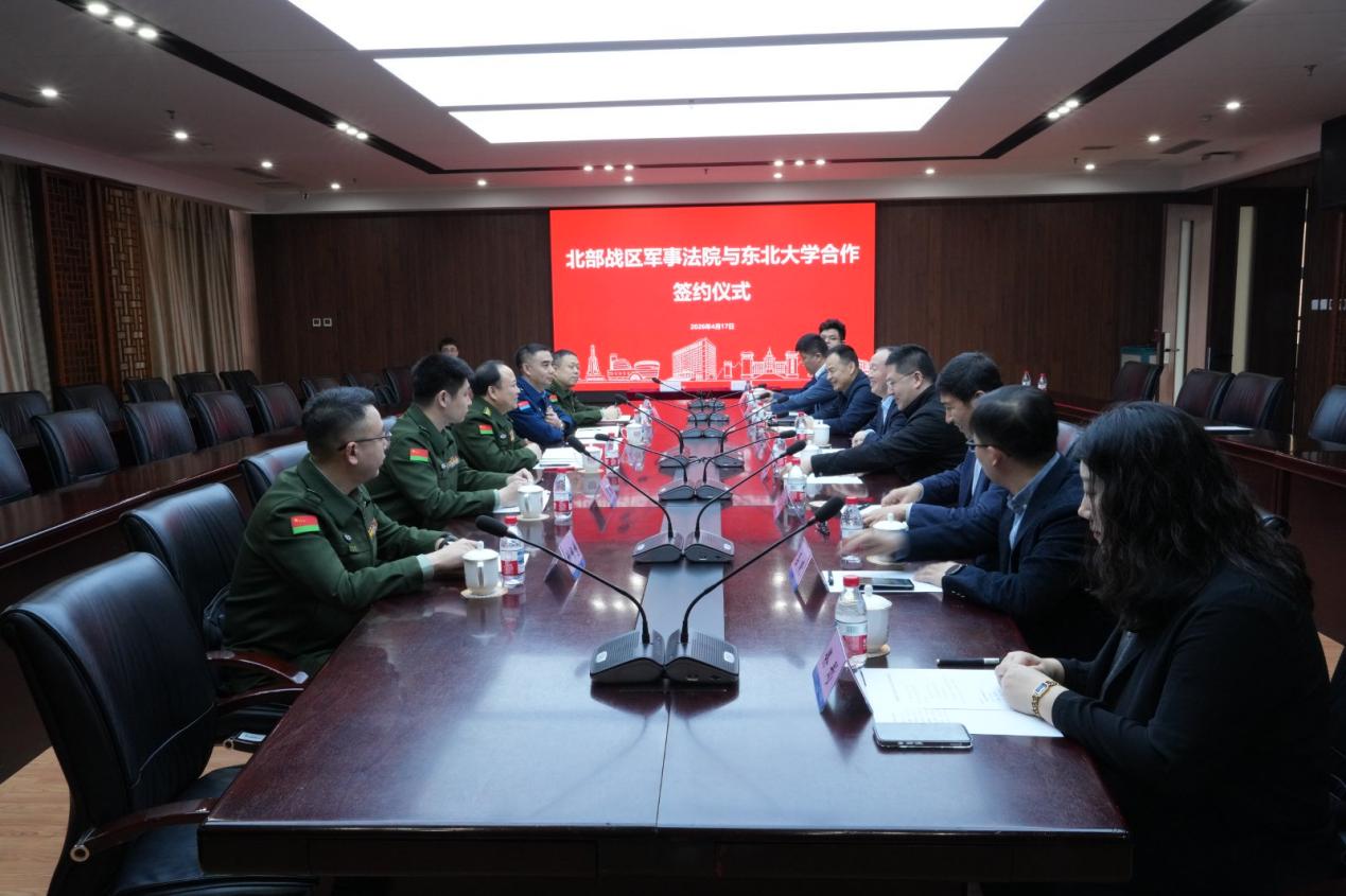 4月17日,东北大学与北部战区军事法院合作共建框架协议签约仪式在东北大学南湖校区汉卿会堂308室举行。北部战区军事法院院长母兵,副院长王艺斐,东北大学党委书记郭海,党委副书记、纪委书记吴豪伟,校长助理刘延晖出席签约仪式。北部战区军事法院和学校相关部门负责人参加活动。吴豪伟主持签约仪式。